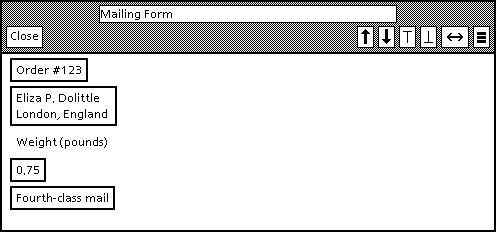 Consider a simple example. The user receives a filled-in mailing form ( Figure 9), which is to be printed for use in the mail room.