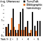 A summary of the average counts for experimental subjects is shown in Figure 8. Although TurvyTalk naturally dominates when describing text formats, it also comes to dominate even where tasks involve concepts like titles, names and dates. The use of user concept terminology tapers off as the session progresses. More interesting is the tendency to combine both forms of speech, as in events 4, 7, etc.: this corroborates our informal observation that users tended to try to relate their concepts to Turvy's by using both languages in the same instruction.
